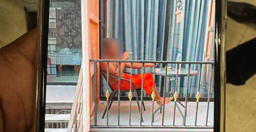 บีบีซีรายงาน ภาพที่พบในโทรศัพท์มือถือแสดงให้เห็นพระรูปหนึ่งระหว่างการเดินทางพักผ่อนอยู่ในสภาพสวมจีวรแค่ครึ่งล่างกำลังนั่งสูบอย่างสบายใจบนระเบียงที่พักคล้ายโรงแรม และบนโต๊ะมีขวดน้ำตั้งที่คล้ายกับขวดน้ำแร่แบรนด์ดัง