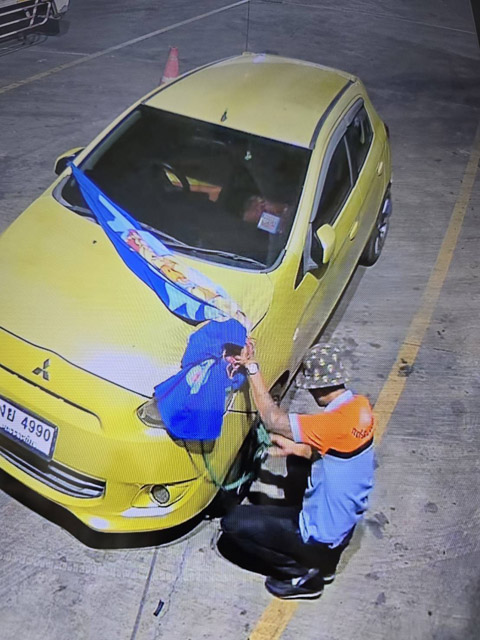 จากการสืบสวน ทราบว่า ผู้ต้องหาได้ใช้รถยนต์เก๋งส่วนตัว ยี่ห้อมิตซูบิชิ มิราจ สีเหลือง หมายเลขทะเบียน งย 4990 นครราชสีมา ขับหลบหนี โดยสวมหมวกสีแดง แว่นตาสีดำ และหน้ากากอนามัยสีดำ เพื่ออำพรางใบหน้า ก่อนหลบหนีมุ่งหน้าไปทางภาคใต้