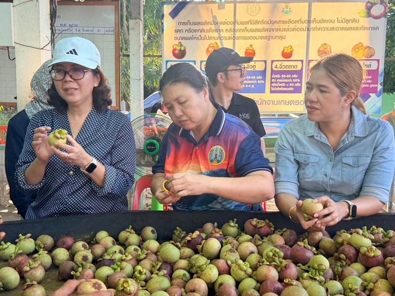 ตลอดจนลงพื้นที่ติดตามสถานการณ์ผลผลิตมังคุดฤดูกาลผลิตปี 2569 ที่กำลังทยอยออกสู่ตลาด ณ กลุ่มมังคุดในพื้นที่อำเภอหลังสวน จ.ชุมพร พร้อมร่วมสังเกตการณ์การประมูลมังคุดเพื่อติดตามการซื้อขายและแนวทางการบริหารจัดการผลผลิตในพื้นที่อย่างต่อเนื่อง.