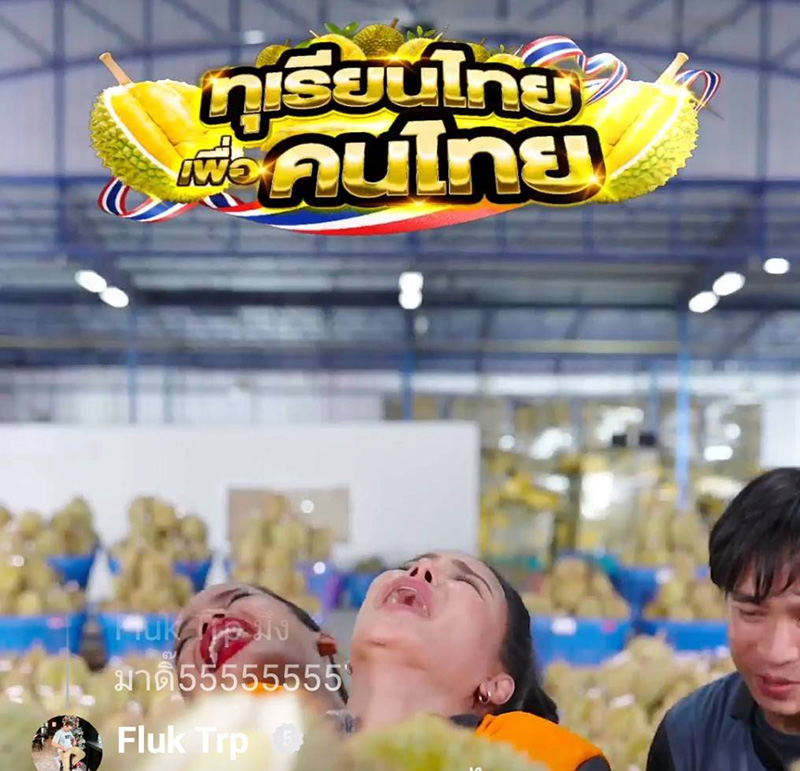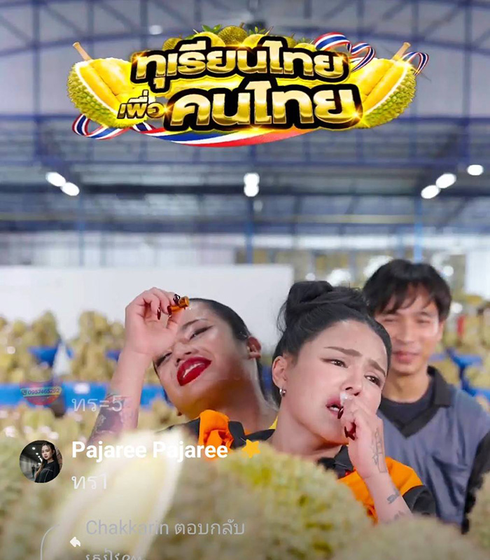 ตนเข้าไปกราบสวัสดีและเจรจาพูดคุยกับชาวสวนกว่า 20 สวน บางสวนเข้าใจและยอมลดราคาให้ แต่บางสวนหมั่นเขี้ยว อยากคิดแพงหน่อย เพราะมองว่าเธอเป็นตัวป่วน ทุเรียนทั้งหมดเป็นสวนจากคนไทยทั้งหมด พร้อมขอบคุณทุกคนที่เข้ามาดูไลฟ์ในวันนี้